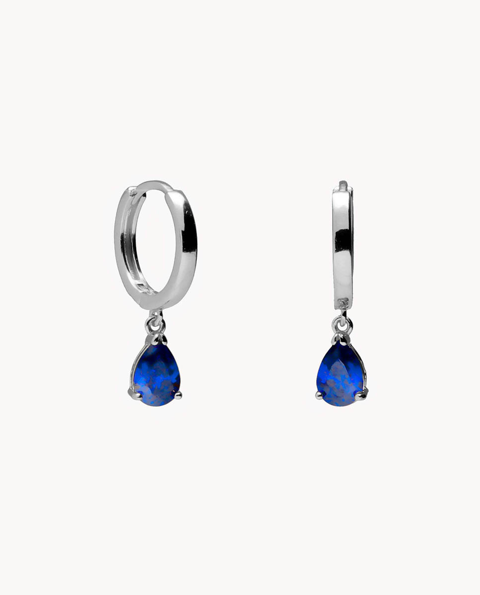 Pendientes de aro gota zafiro de plata de ley 925 bañada en rodio