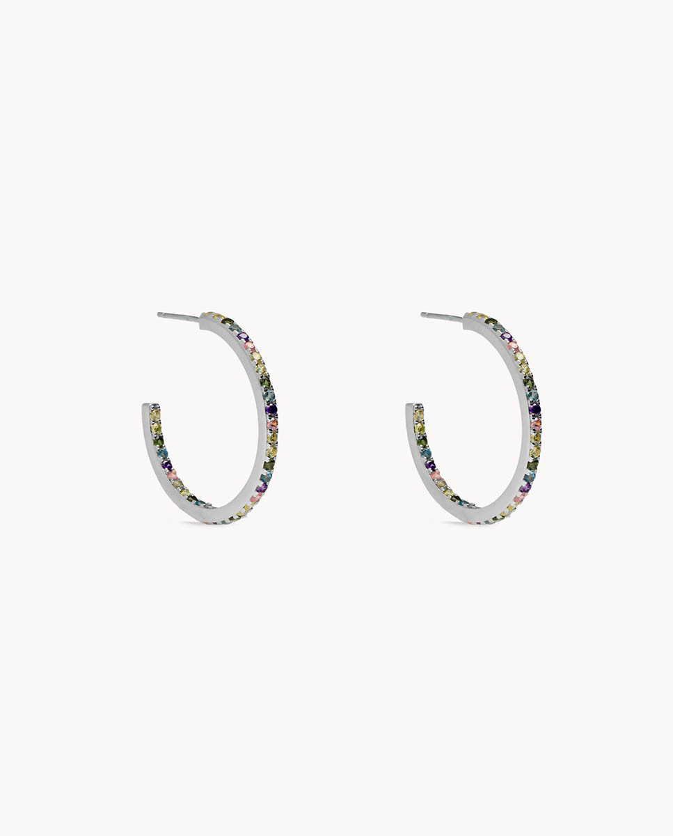 Pendientes de aro iris m de plata de ley 925 bañada en rodio