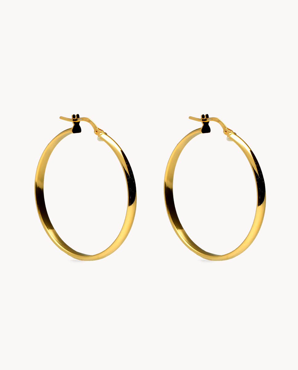 Pendientes de aro de plata de ley 925 bañada en oro de 30 mm de diámetro interior y 3 mm de ancho, cierre catalán.