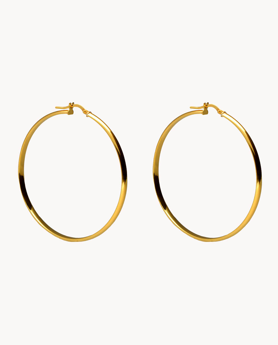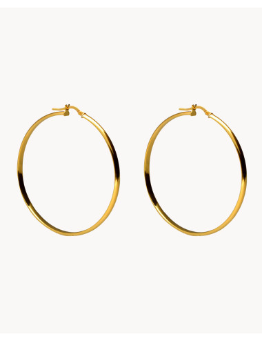 Pendientes de aro de plata de ley 925 bañada en oro 18K de 50 mm de diámetro interior y 3 mm de ancho, cierre catalán.