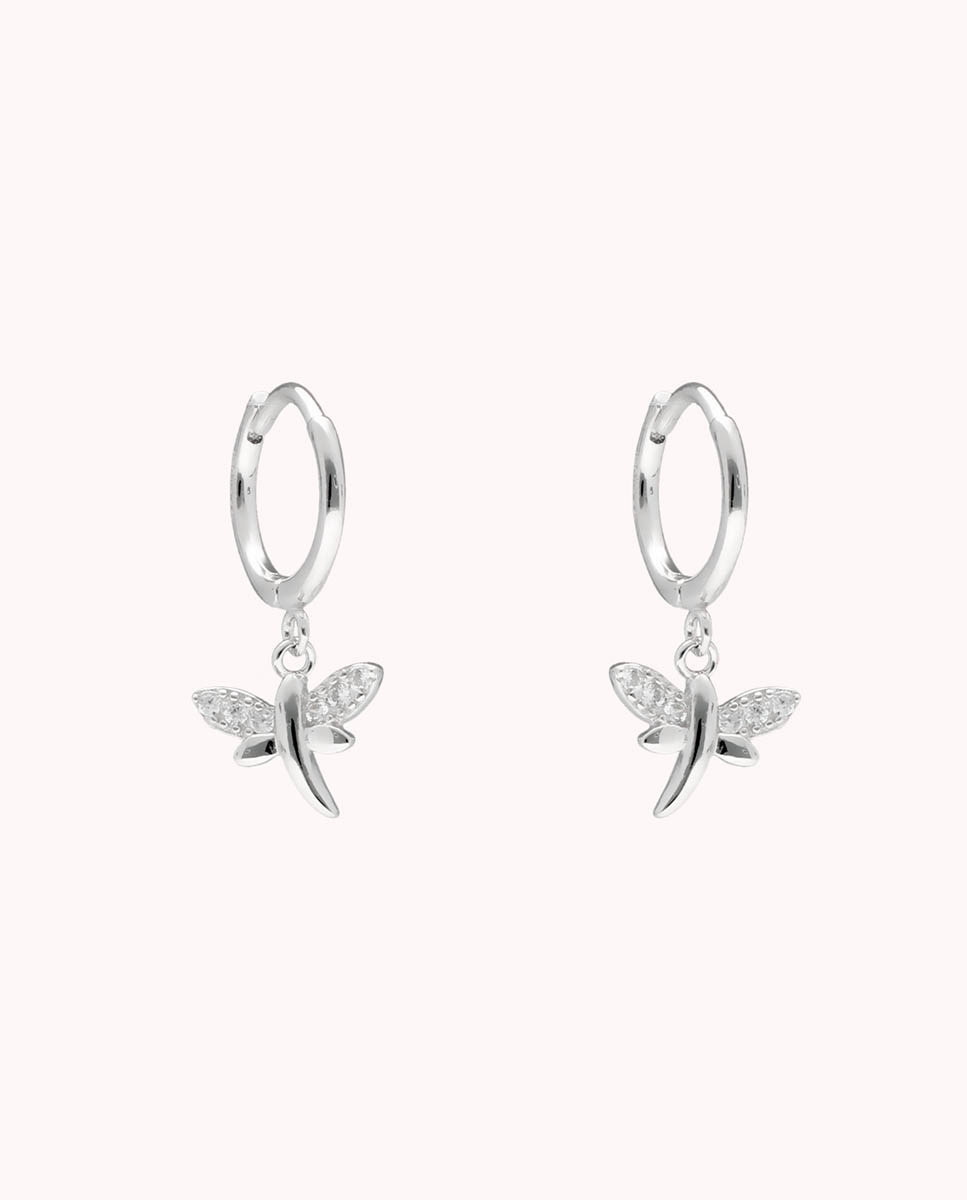 Pendientes de aro libélula brilla de plata de ley 925 bañada en rodio