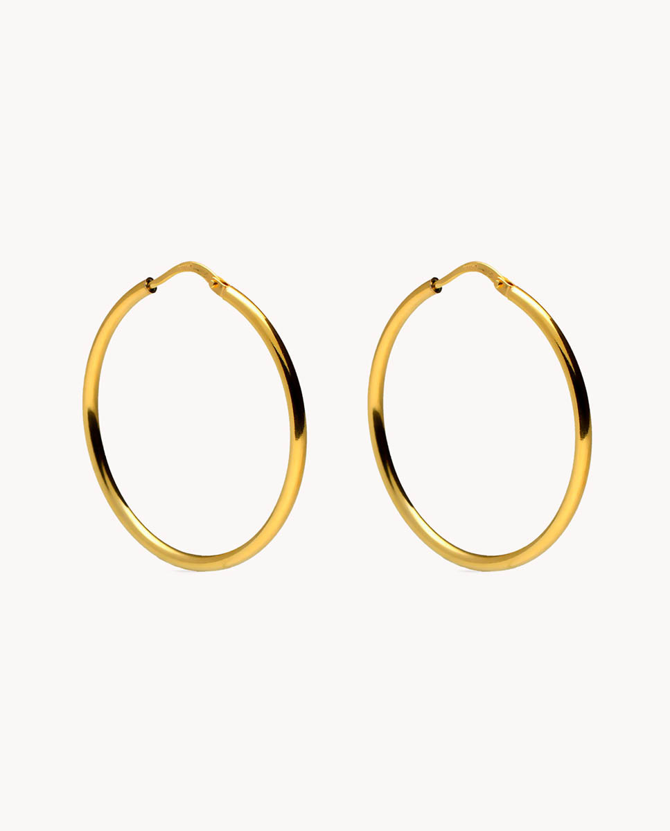 Pendientes de aro de plata de ley 925 bañada en oro 18K de 25 mm de diámetro interior y 2 mm de ancho, cierre africano.