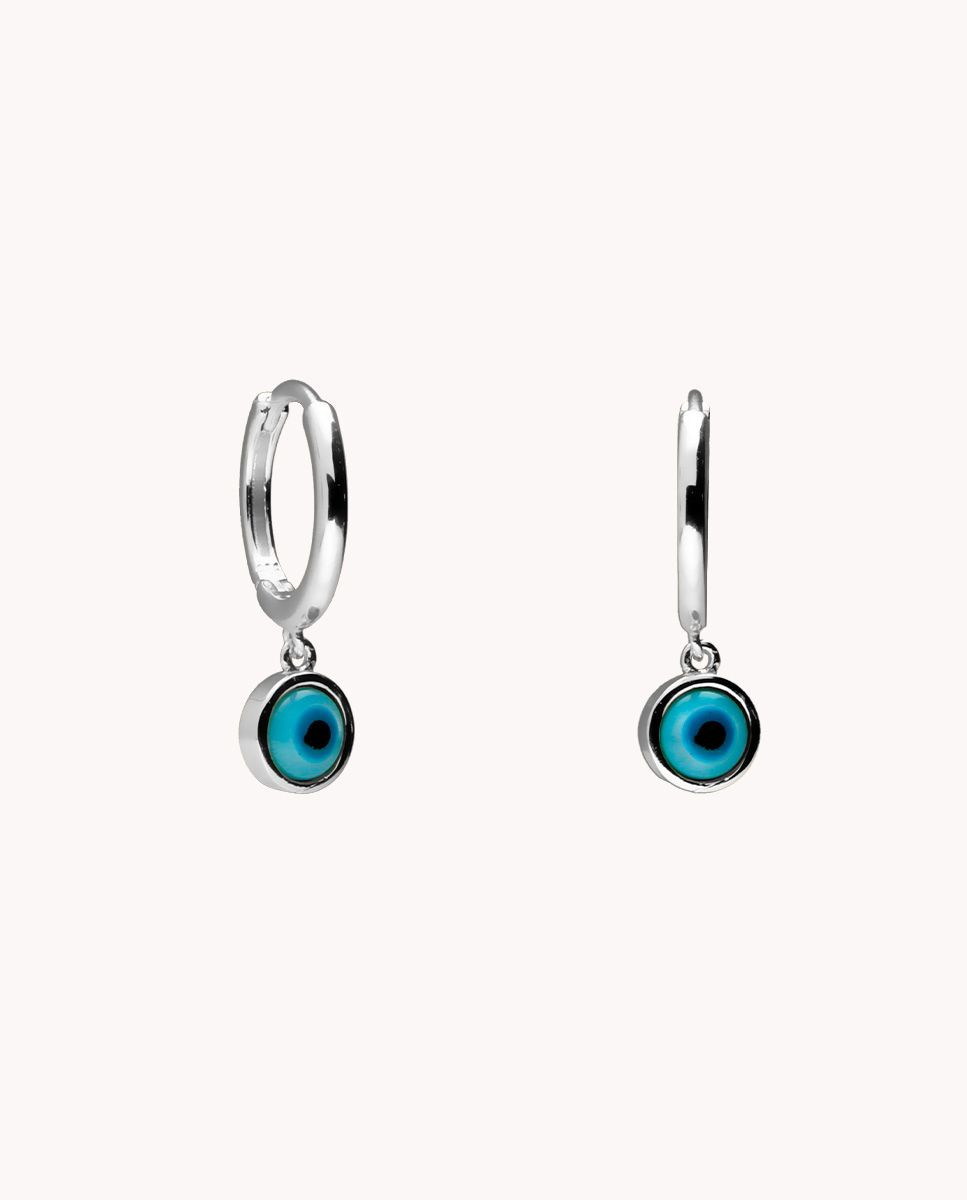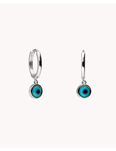 Pendientes de aro ojo turco nácar de plata de ley 925 bañada en rodio
