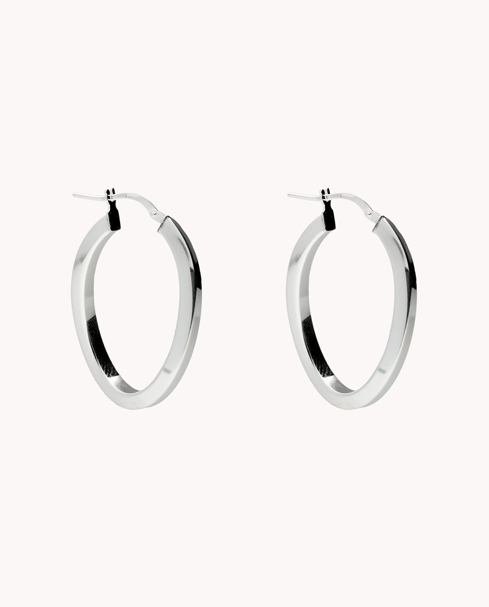 Pendientes de aro de plata de ley 925 ovalados de 1,7 cms de ancho y 3 cms de alto, 3 mm de grosor y cierre catalán.