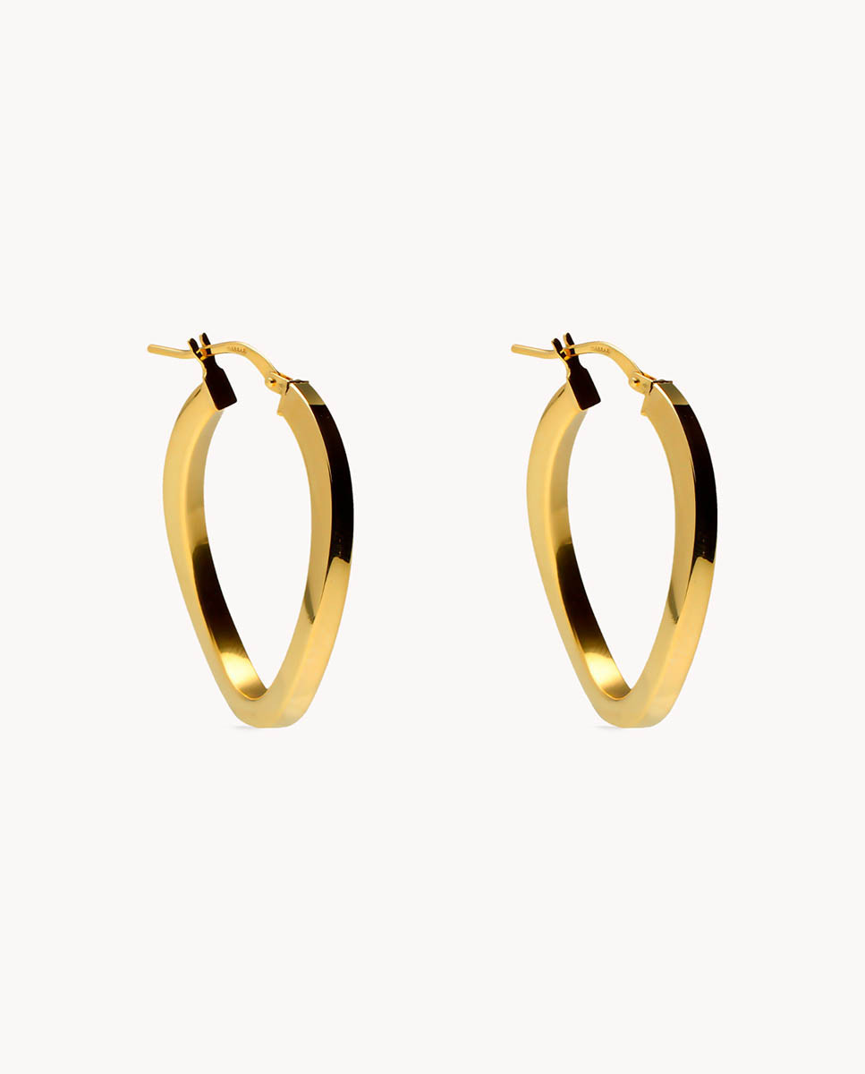 Pendientes de aro ovalado de plata de ley 925 bañada en oro 18K de 17 mm de ancho, 30 mm de alto y 3 mm de grosor, cierre catalán.