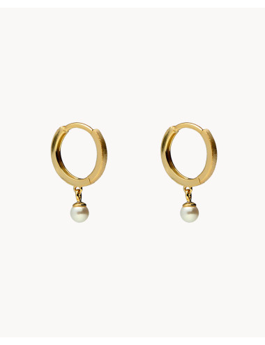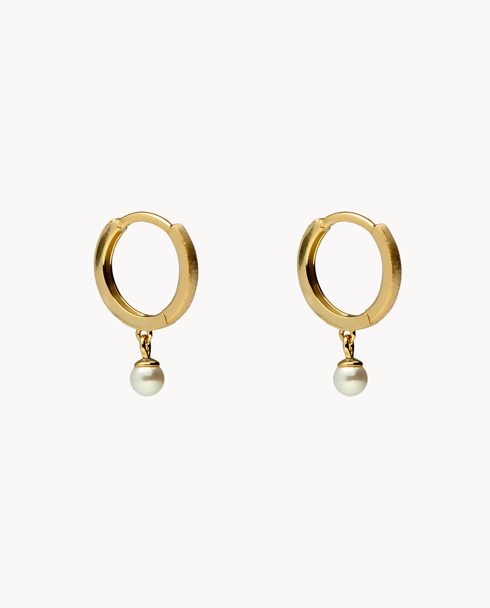Pendientes de aro de plata de ley 925 bañada en oro con acabado matizado de 10 mm de diámetro interno con colgante de perla cultivada de 4 mm de diámetro y cierre africano.