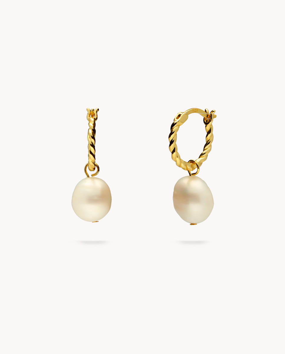 Pendientes de aro perla libre de plata de ley 925 bañada en oro