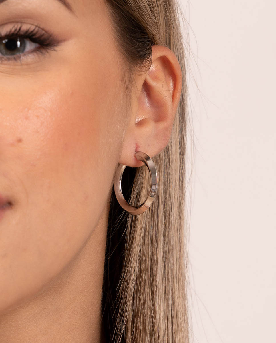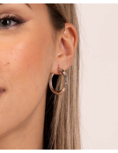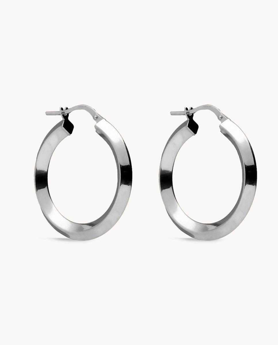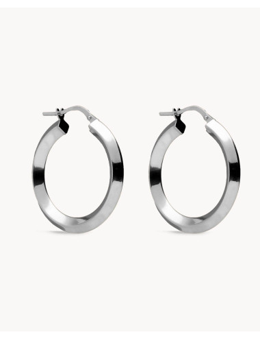 Pendientes de aro de plata de ley 925 bañada en rodio de 20 mm de diámetro interior y 4 mm de grosor, cierre catalán.
