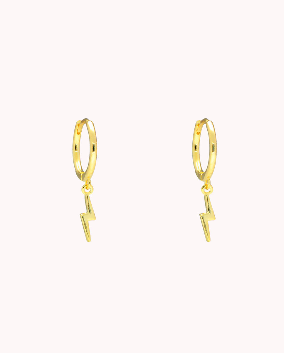 Pendientes de aro de plata de ley 925 bañada en oro de 9 mm de diámetro (interior) con colgante en forma de rayo de 10 mm de alto y cierre africano.