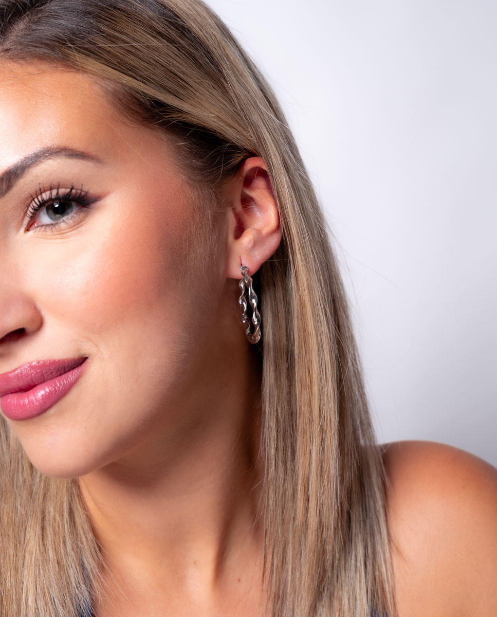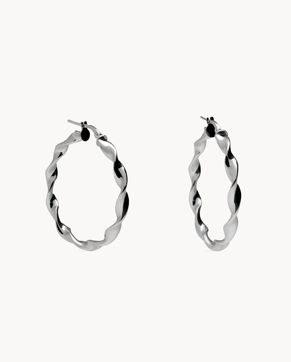 Pendientes de aro rizado 25mm de plata de ley 925 bañada en rodio