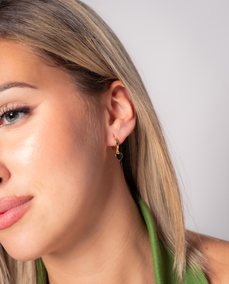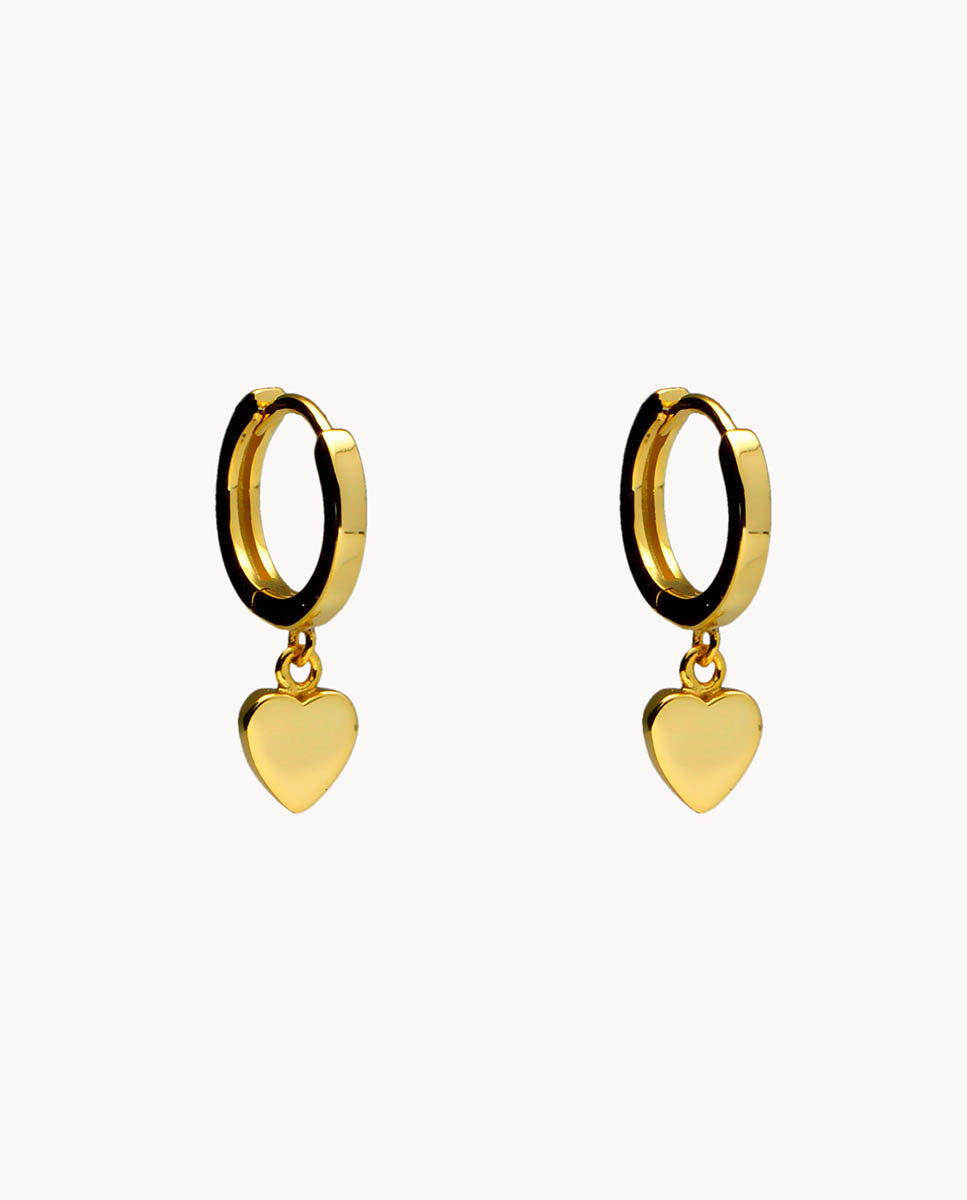 Pendientes de aro rock love oro de plata de ley 925 bañados en oro con corazón