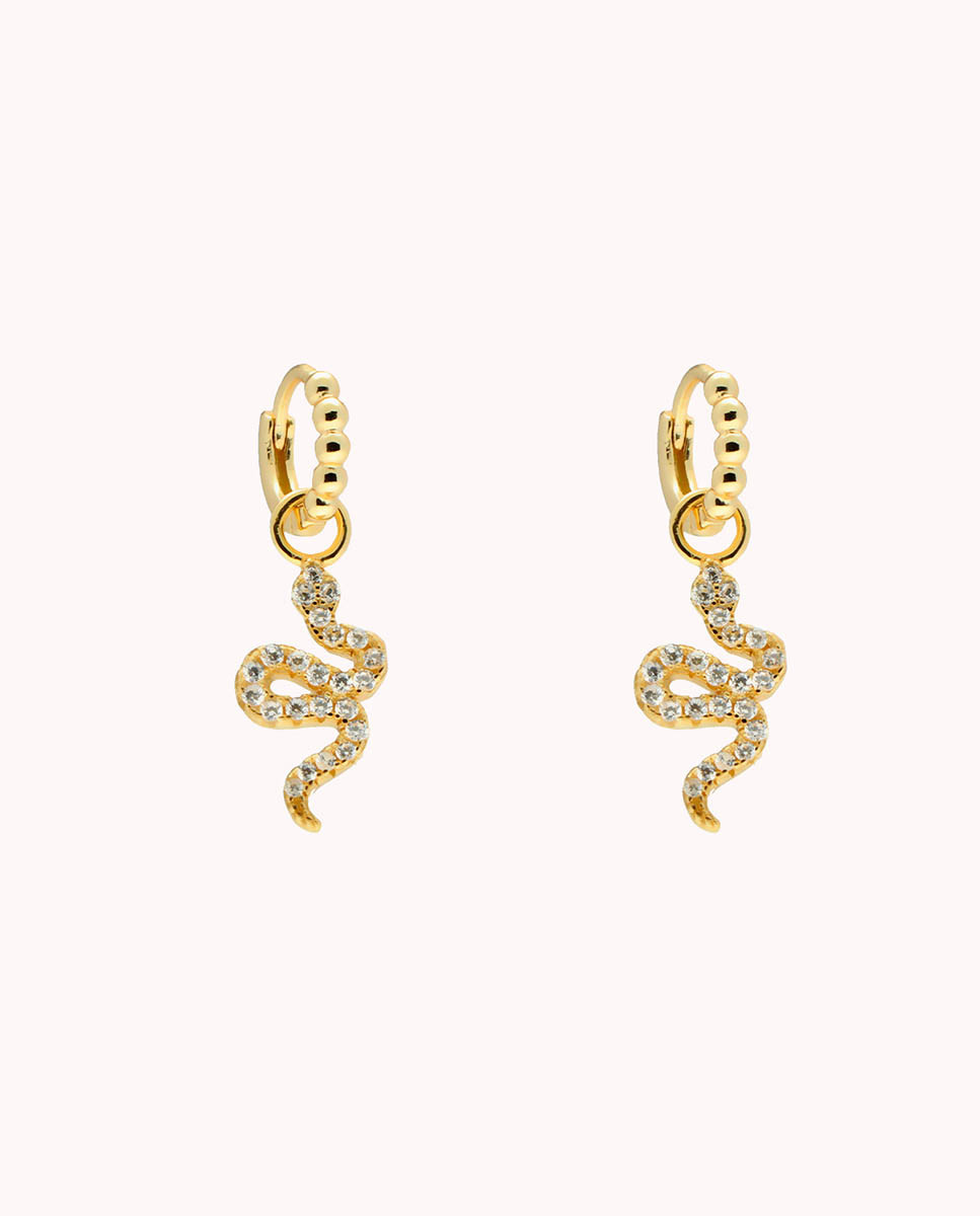 Pendientes de aro serpiente mini bolas de plata de ley 925 bañada en oro