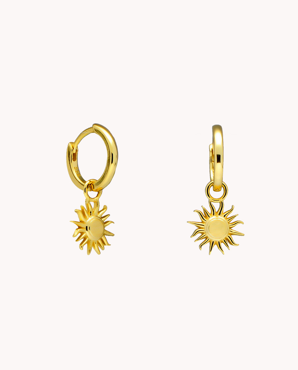 Pendientes de aro sol vibra de plata de ley 925 bañada en oro