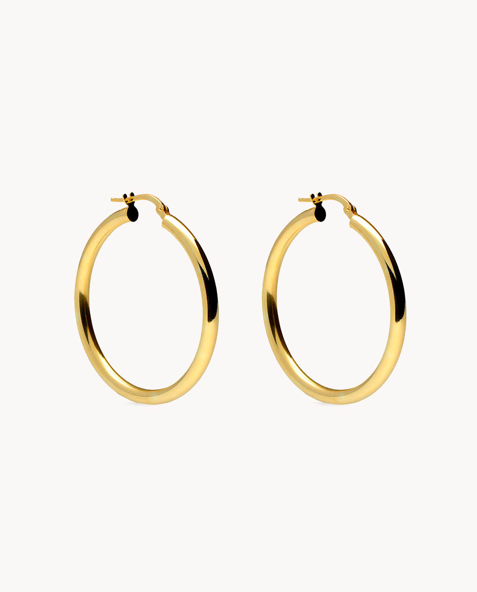 Pendientes de aro tubo 20mm de plata de ley 925 bañada en oro