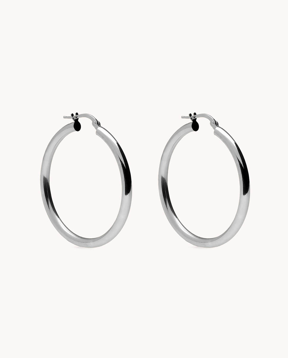 Pendientes de aro tubo 25mm de plata de ley 925 bañada en rodio