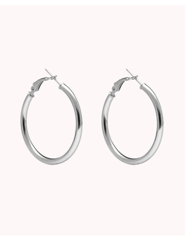 Pendientes de aro de plata de ley 925 bañada en rodio de 30 mm de diámetro interior y 3 mm de ancho, cierre catalán.