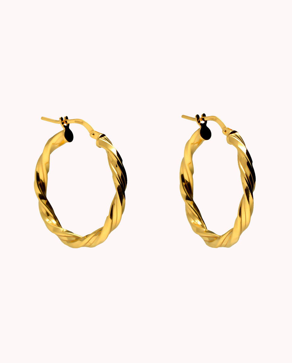 Pendientes de aro de plata de ley 925 bañada en oro 18K con diseño trenzado de 20 mm de diámetro interior y 3 mm de ancho, cierre catalán.