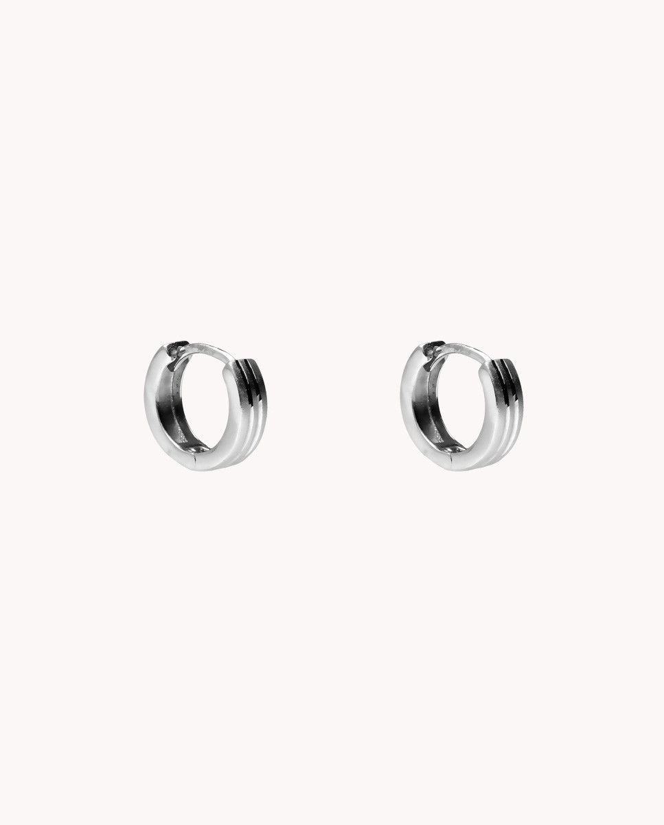 Pendientes de aro de plata de ley 925, chapados en rodio y cierre africano. Diámetro 10 mm (interior), ancho 4 mm.