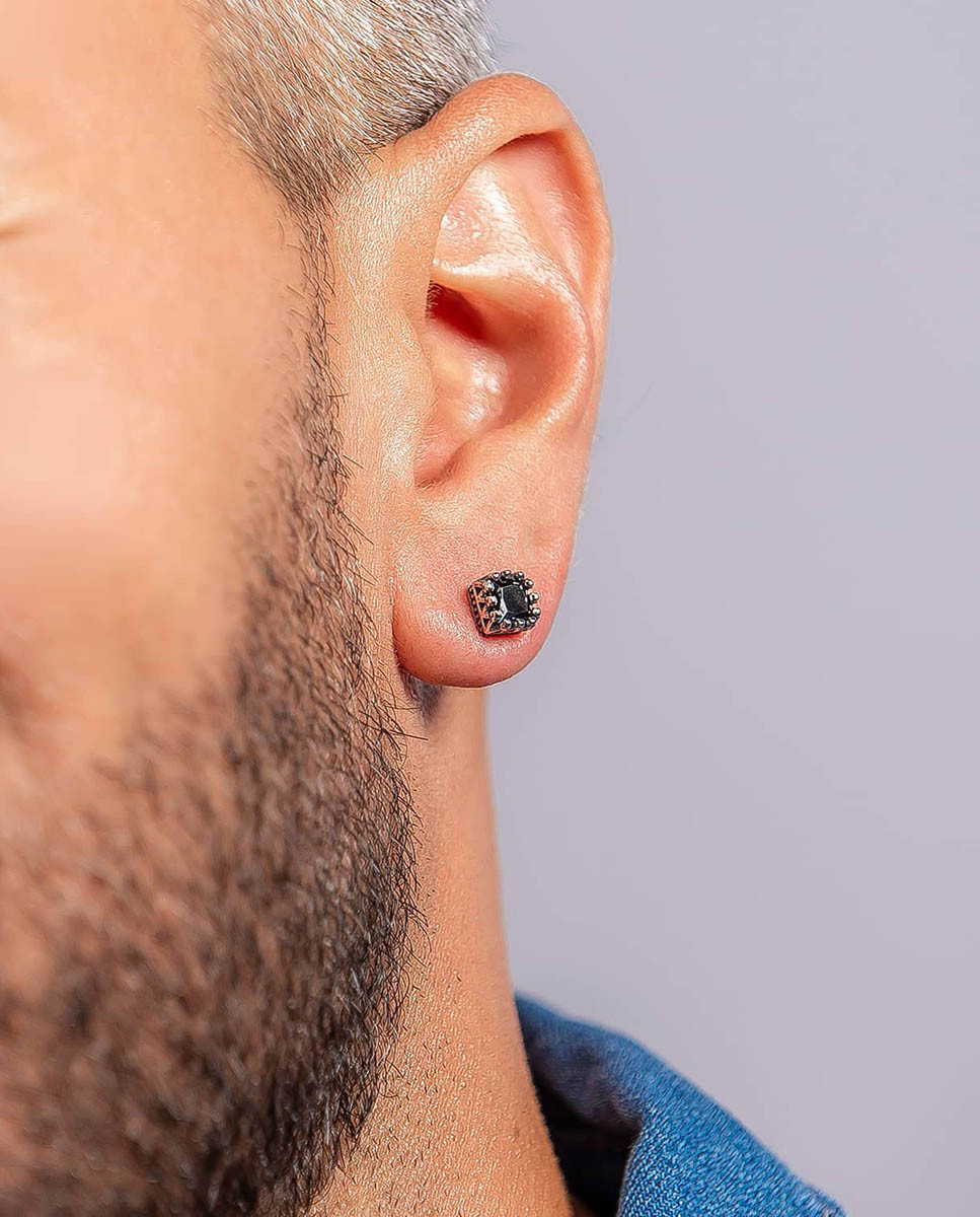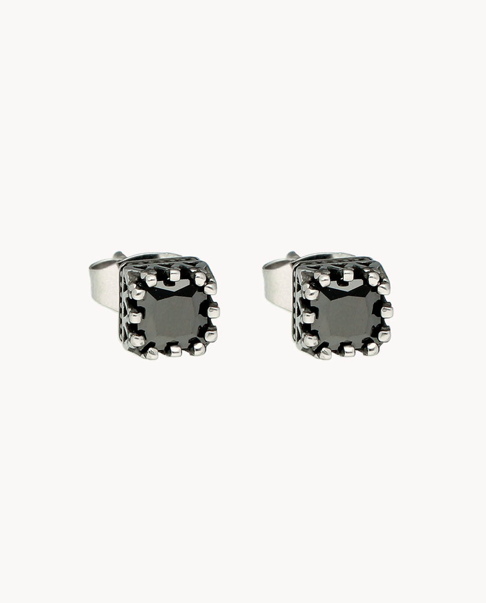 Pendientes de acero inoxidable con circonita negra cuadrada de 5 mm x 5 mm (ancho por alto) y cierre de presión.