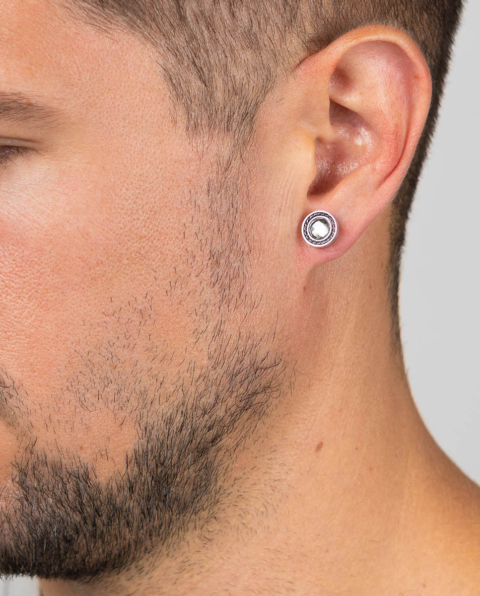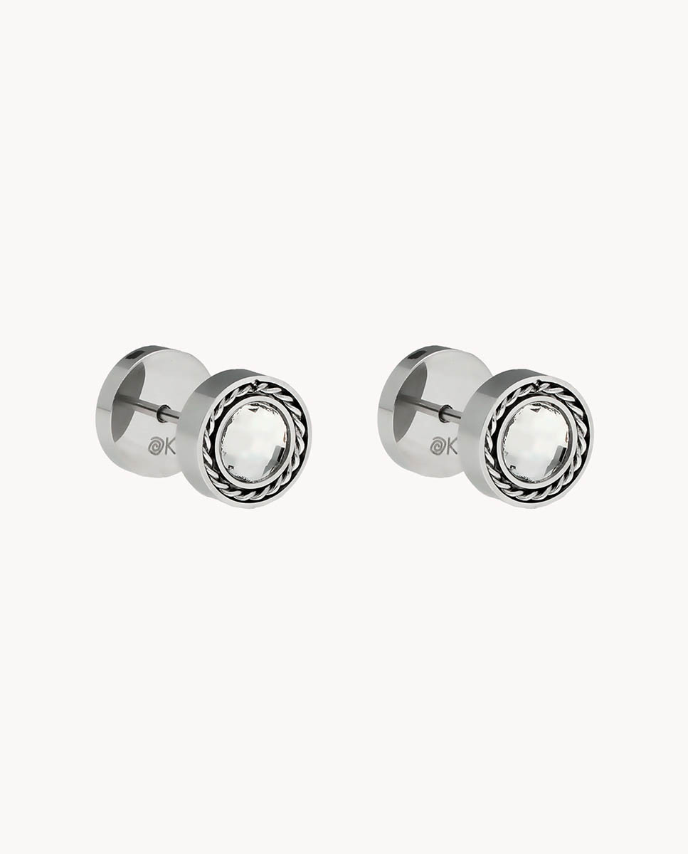Pendientes de acero inoxidable de 9 mm de diámetro y circonita blanca de 6 mm de diámetro, cierre de rosca.
