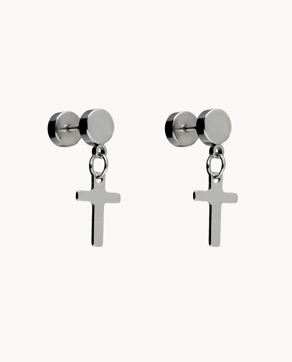 Pendientes cruz botón de acero inoxidable