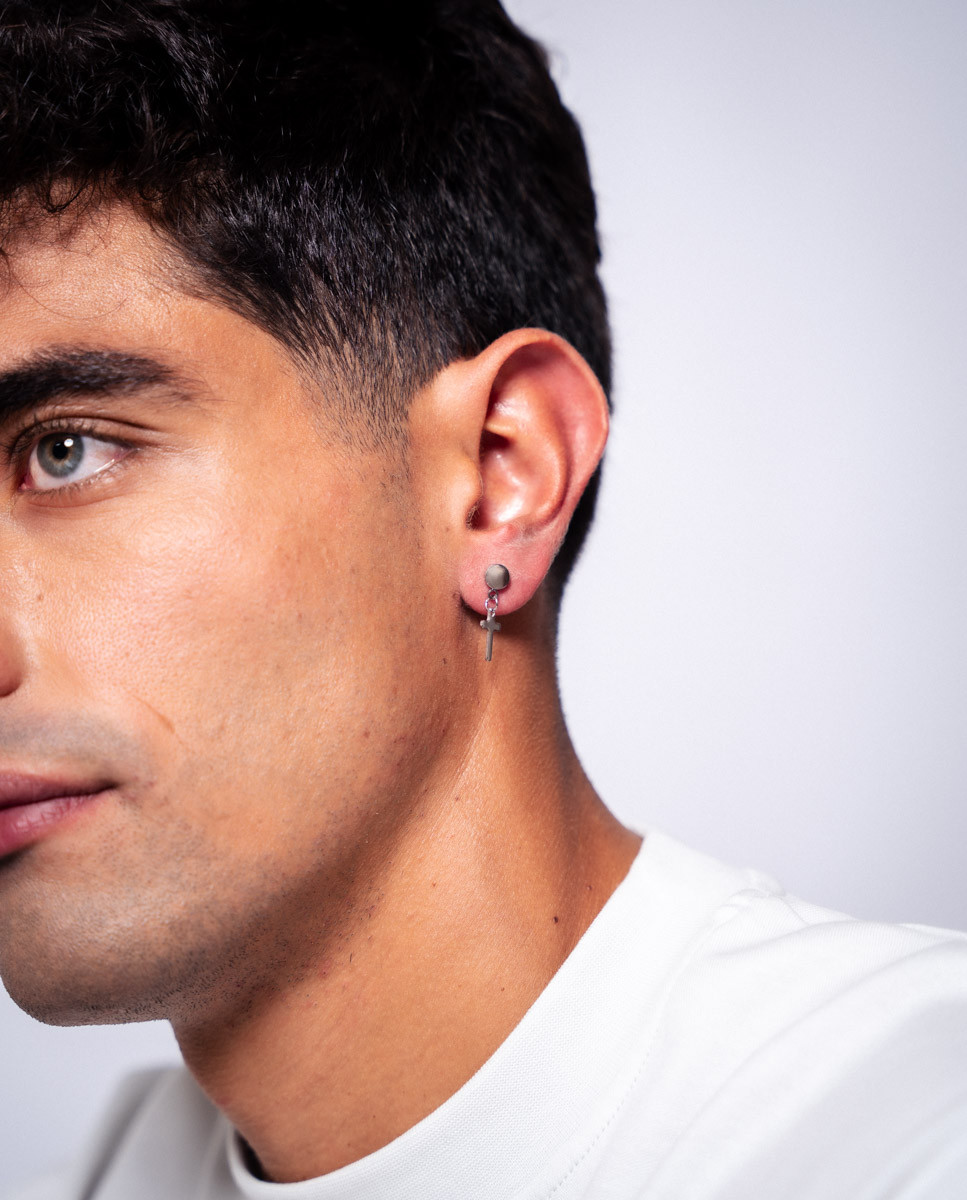 Pendientes de acero inoxidable con chatón de 5 mm de diámetro y cruz de 11 mm con movimiento y cierre de rosca.