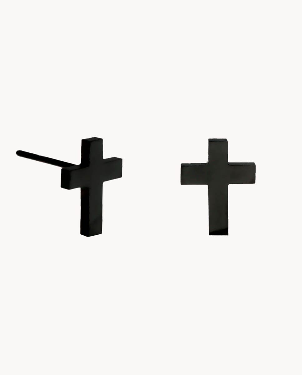 Pendientes cruz mini lisa de acero inoxidable ip negro