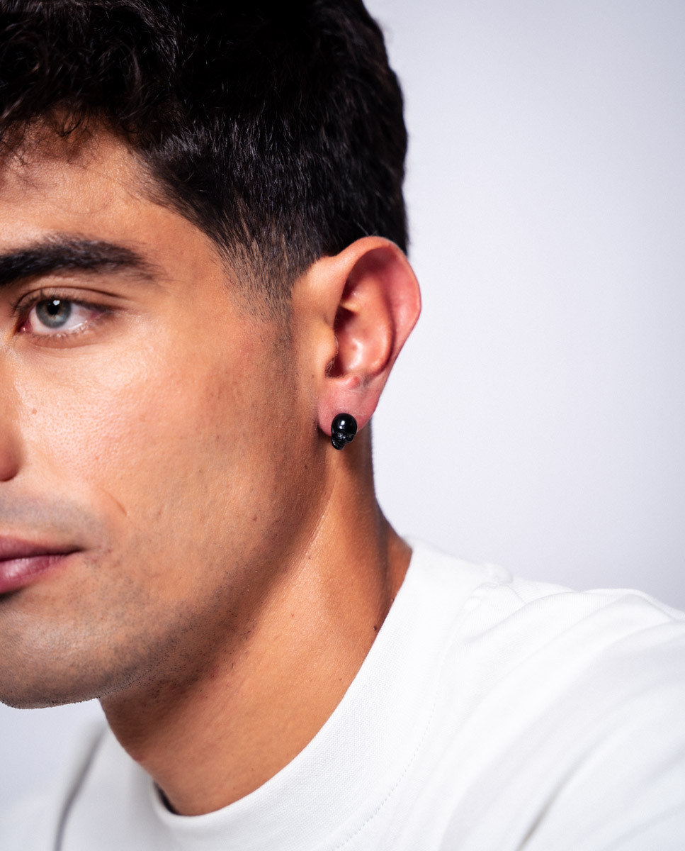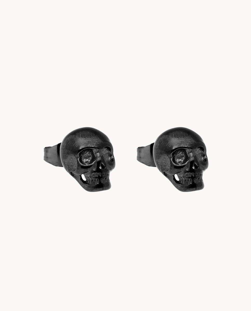 Pendientes de acero inoxidable IP negro con forma de calavera y cierre de presión.