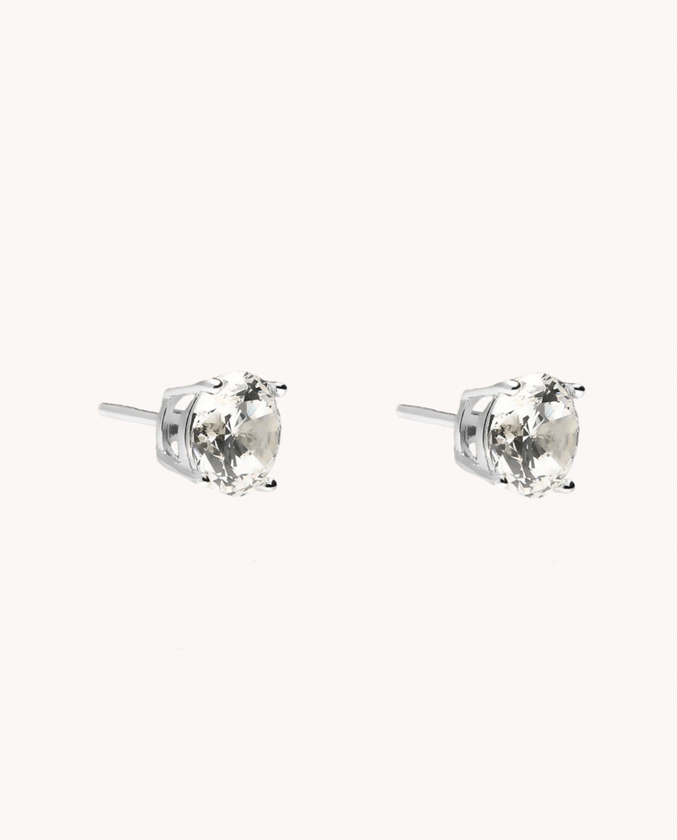 Pendientes de plata de ley 925 bañada en rodio con circonita blanca redonda de 7 mm de diámetro engastada en 4 garras.