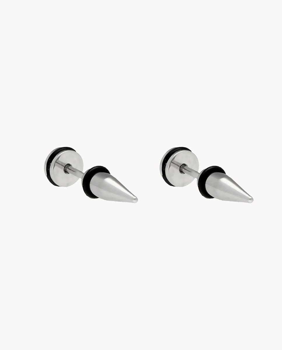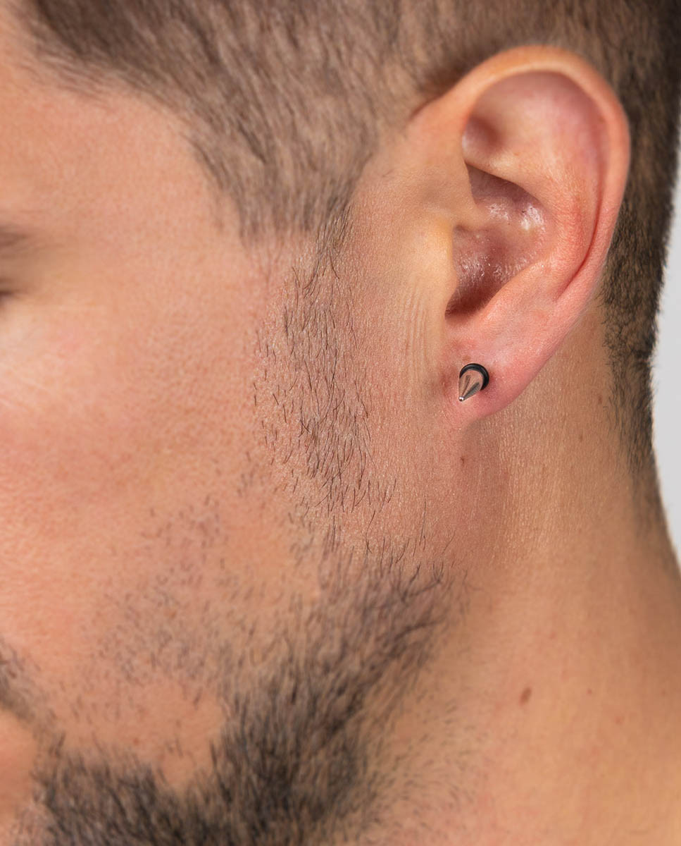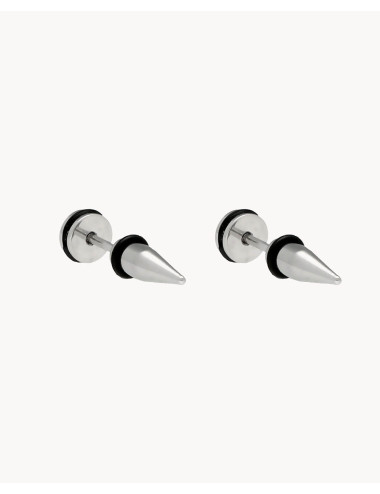 Pendientes de acero inoxidable con pincho y detalles con caucho, cierre de rosca.