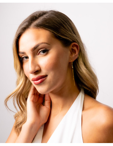 Pendientes largos ola celeste de plata de ley 925 bañada en oro