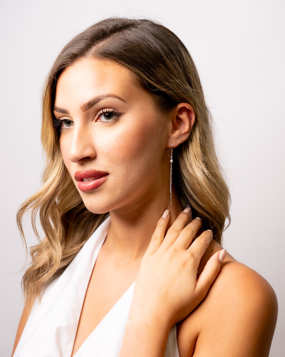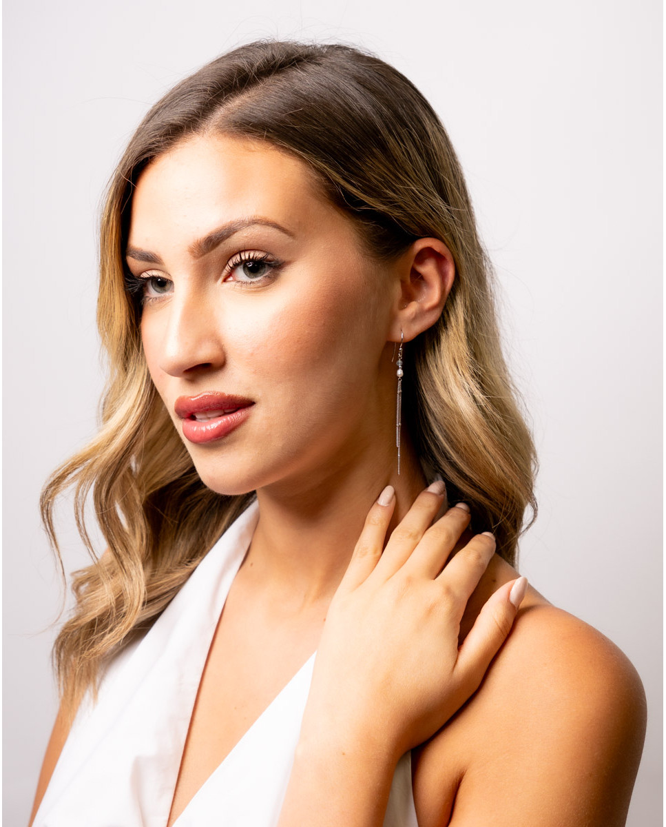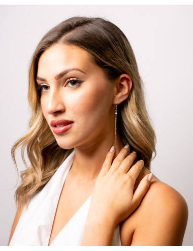 Pendientes largos ola celeste de plata de ley 925 bañada en rodio