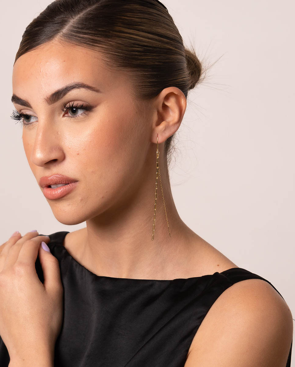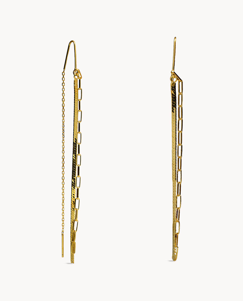 Pendientes largos pasarela de plata de ley 925 bañada en oro