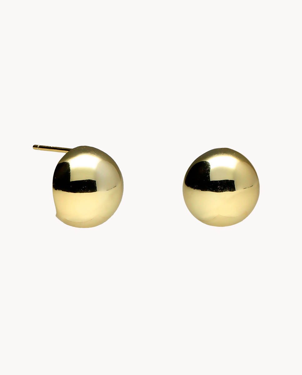 Pendientes de plata de ley 925 bañada en oro 18K en forma de media bola de 13 mm de diámetro y cierre de presión.