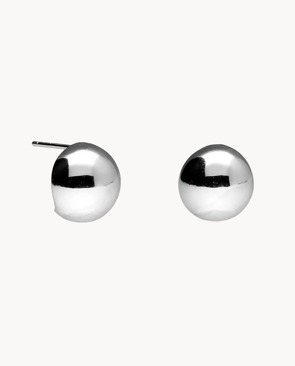 Pendientes de plata de ley 925 bañada en rodio en forma de media bola de 13 mm de diámetro y cierre de presión.
