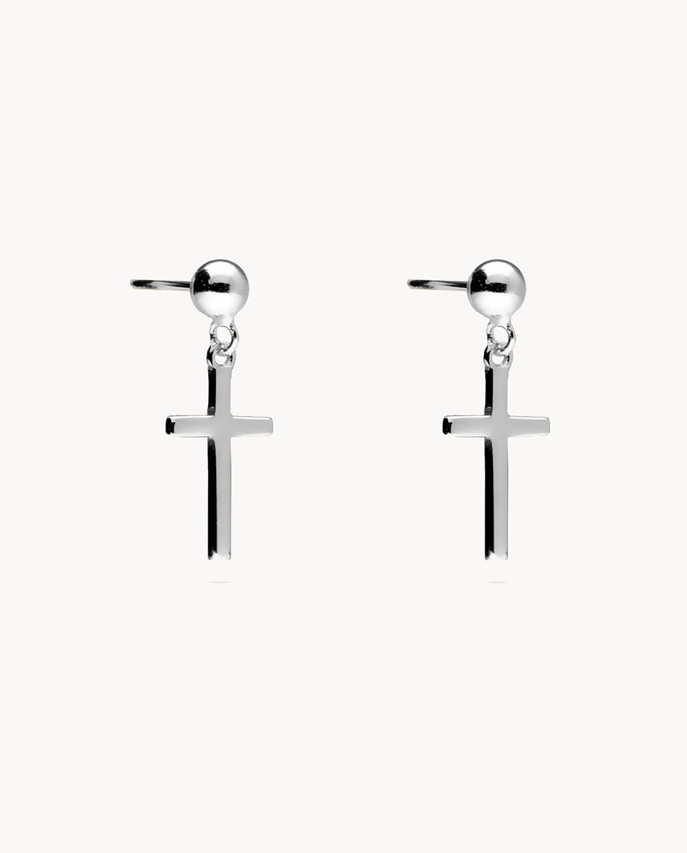 Pendientes bolaluz de plata de ley 925 bañados en rodio con cruz
