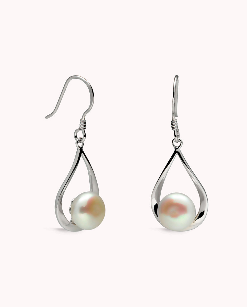 Pendientes de plata de ley 925 bañados en rodio con perla cultivada