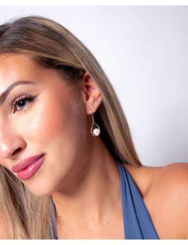 Pendientes de plata de ley 925 bañados en rodio con colgante en forma de gota de 3,5 cms de alto y en su interior perla cultivada de 8 mm de diámetro, cierre de gancho.