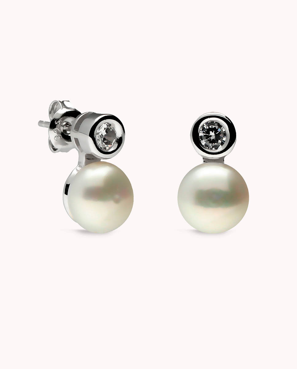 Pendientes de plata de ley 925 bañados en rodio con perla cultivada y circonita