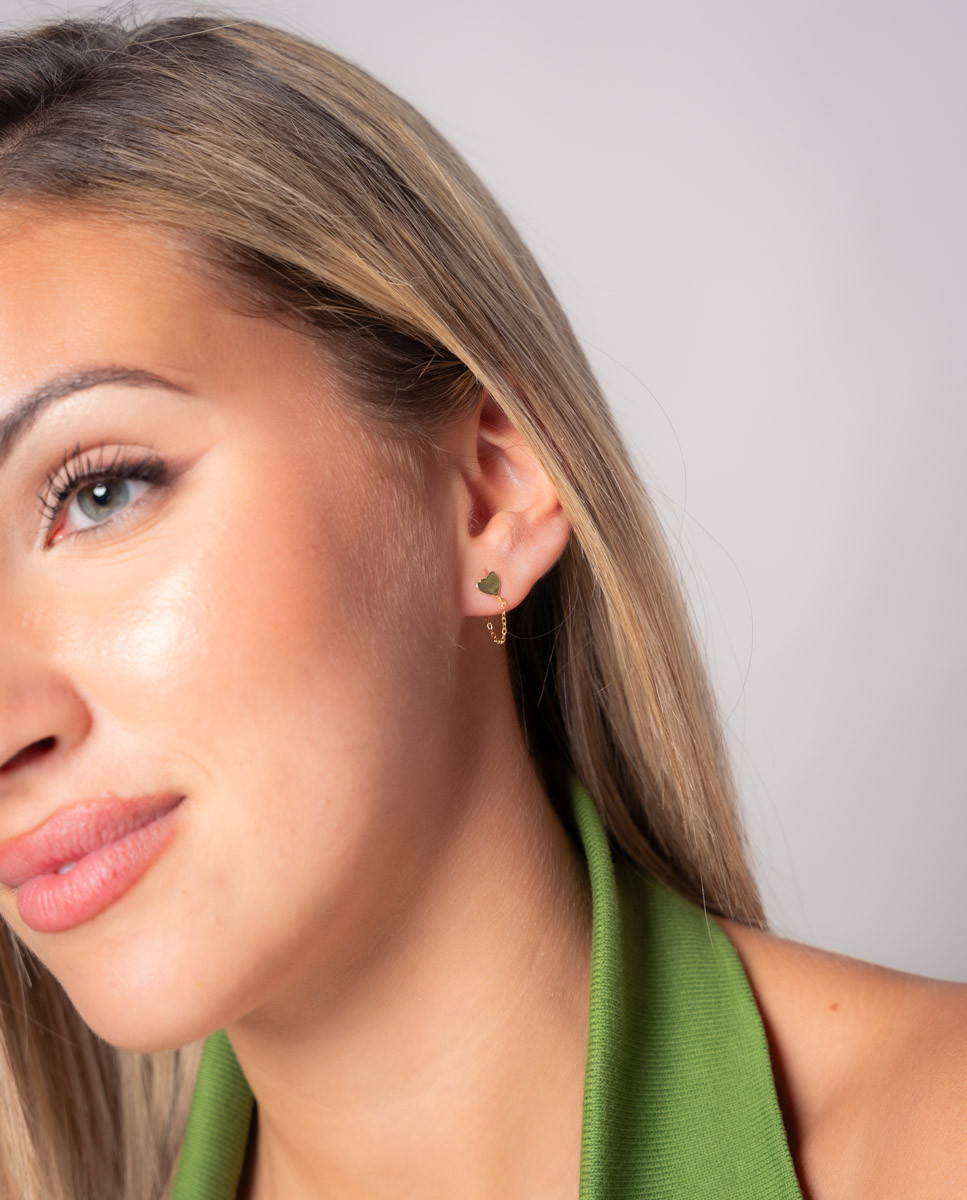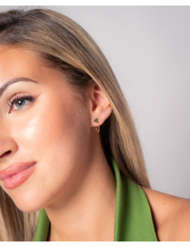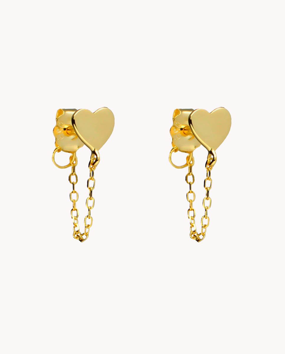 Pendientes de plata de ley 925 bañada en oro con corazón y cadena de 1,5 cms de largo, cierre de presión.