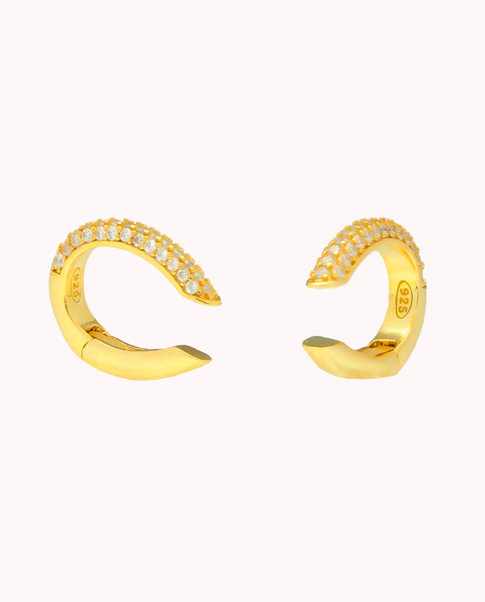 Pendientes ear cuff de plata de ley 925 bañados en oro con circonitas blancas.