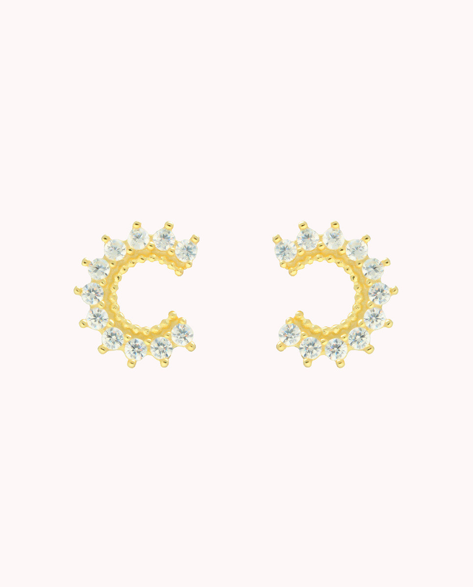 Pendientes medio sol brillante de plata de ley 925 bañada en oro