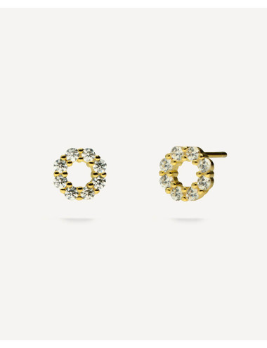 Pendientes mini flor redonda circonitas de plata de ley 925 bañada en oro