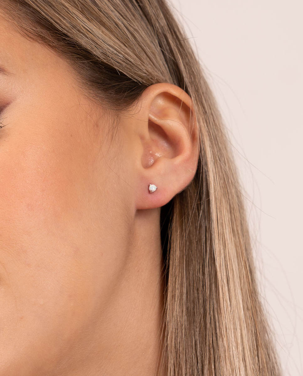 Pendientes de plata de ley 925 bañada en oro 18K con piedra ópal de 3 mm de diámetro y cierre de presión.