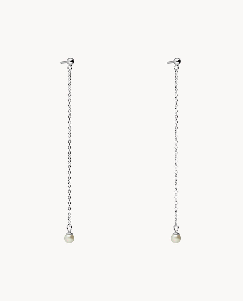 Pendientes de plata de ley 925 bañada en rodio con dormilona de plata de 3 mm de diámetro y cadena de 6 cms de largo finalizada en perla cultivada de 4 mm de diámetro, cierre de presión.