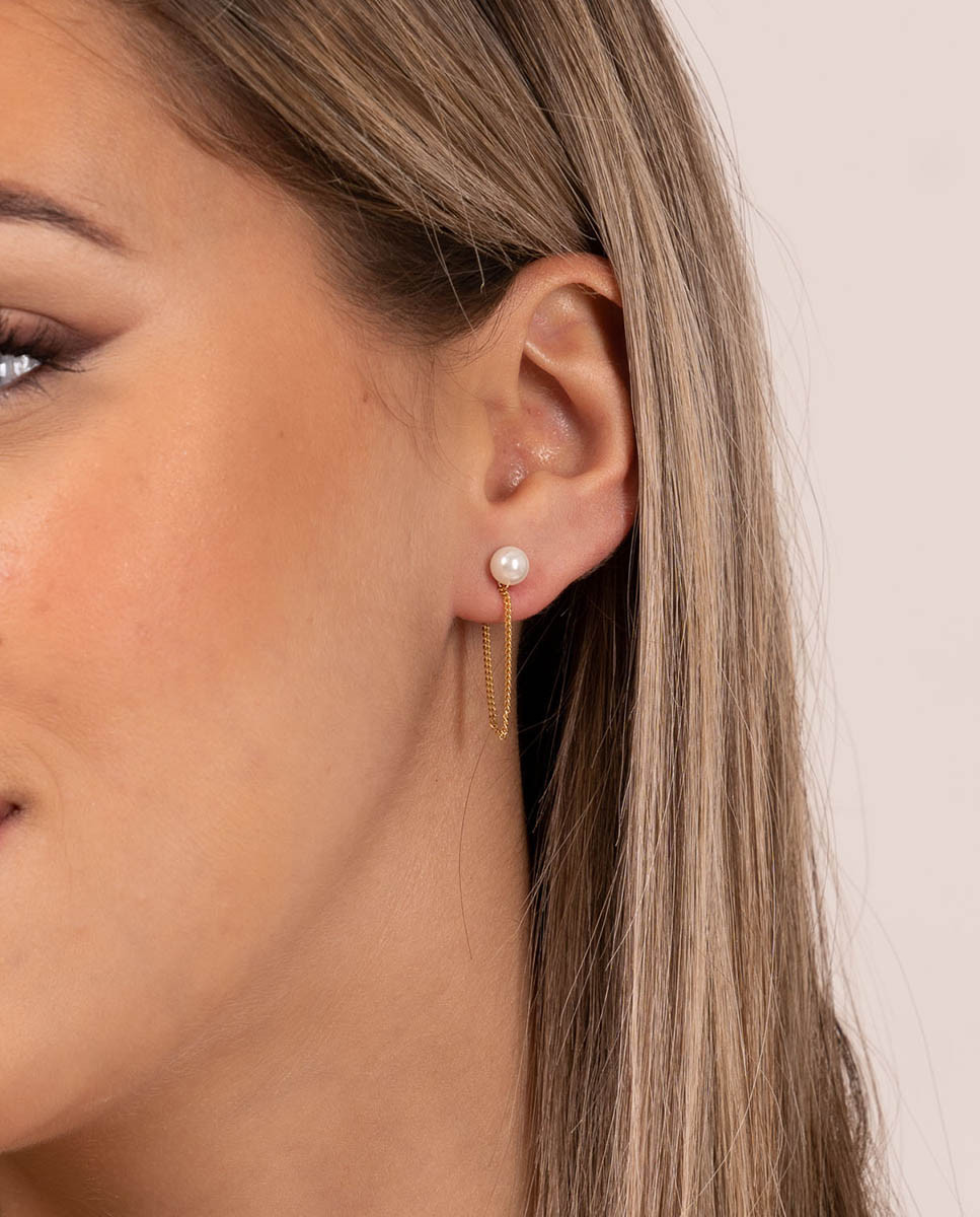 Pendientes perla cadena de plata de ley 925 bañada en oro