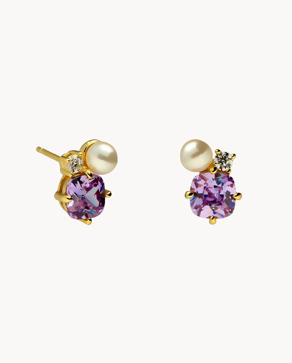 Pendientes perla cultivada amatista tú y yo de plata de ley 925 bañada en rodio