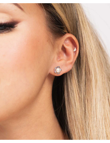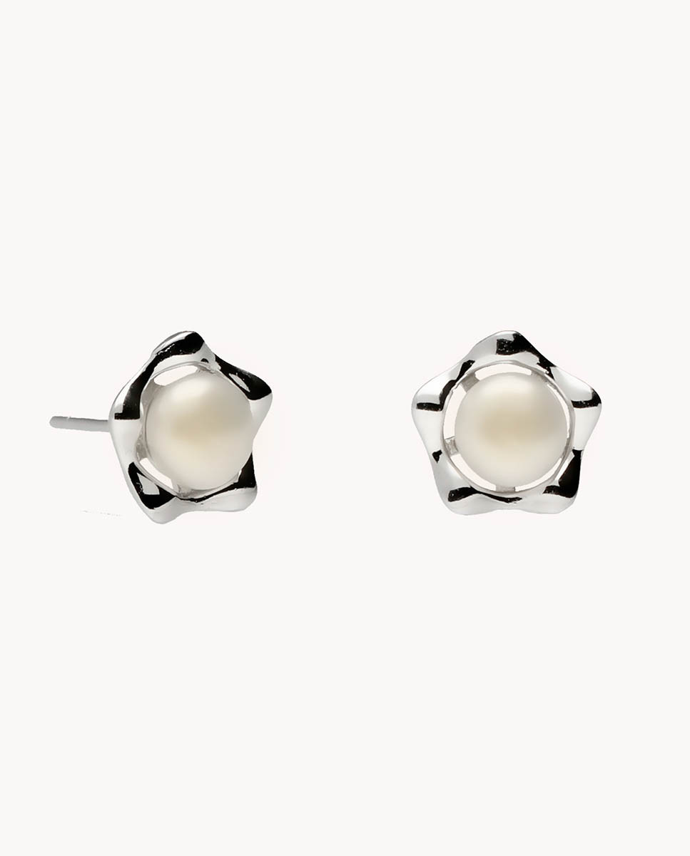 Pendientes perla cultivada en estrella de plata de ley 925 bañada en rodio