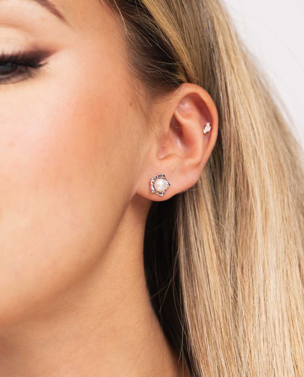 Pendientes de plata de ley 925 bañada en rodio con perla cultivada de 5,5 mm de diámetro y cierre de presión.