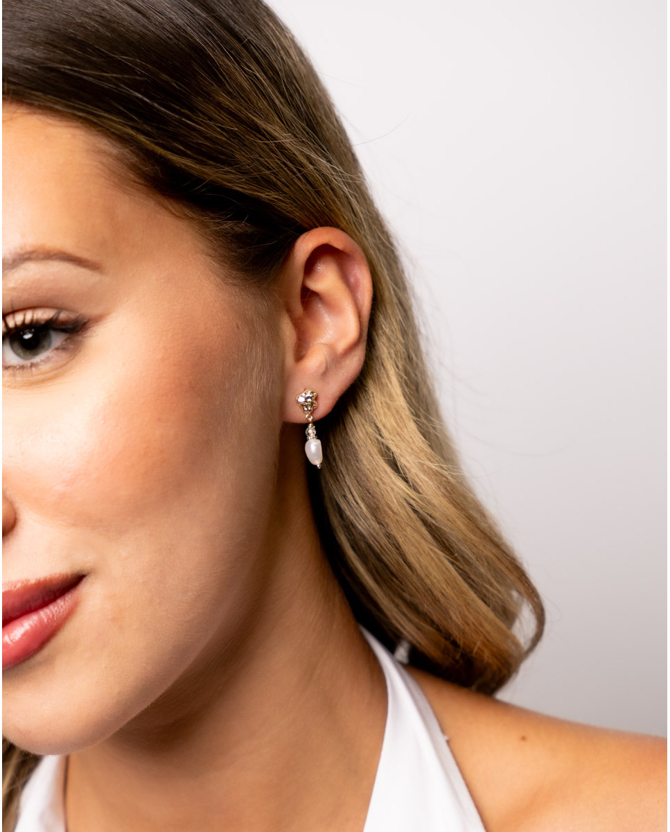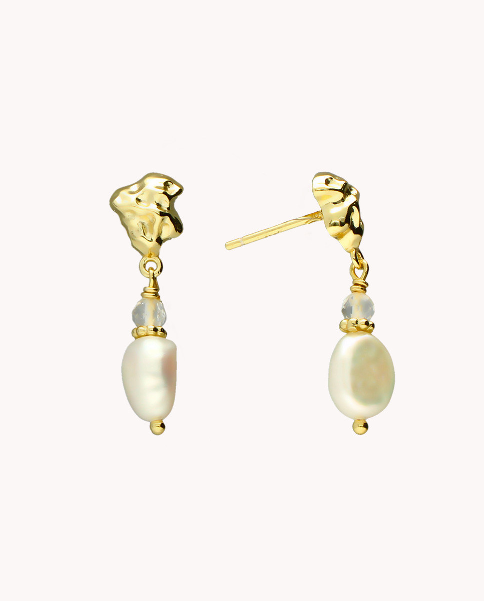 Pendientes perlada blanca de plata de ley 925 bañada en oro